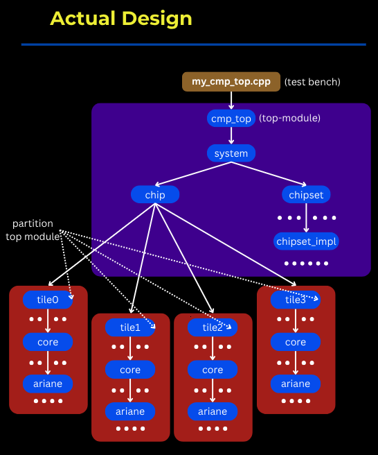 - Third, we plan to do the verilation of the detected partition separately with a test bench having MPI functions compatible with communicating with other partitions and the system.