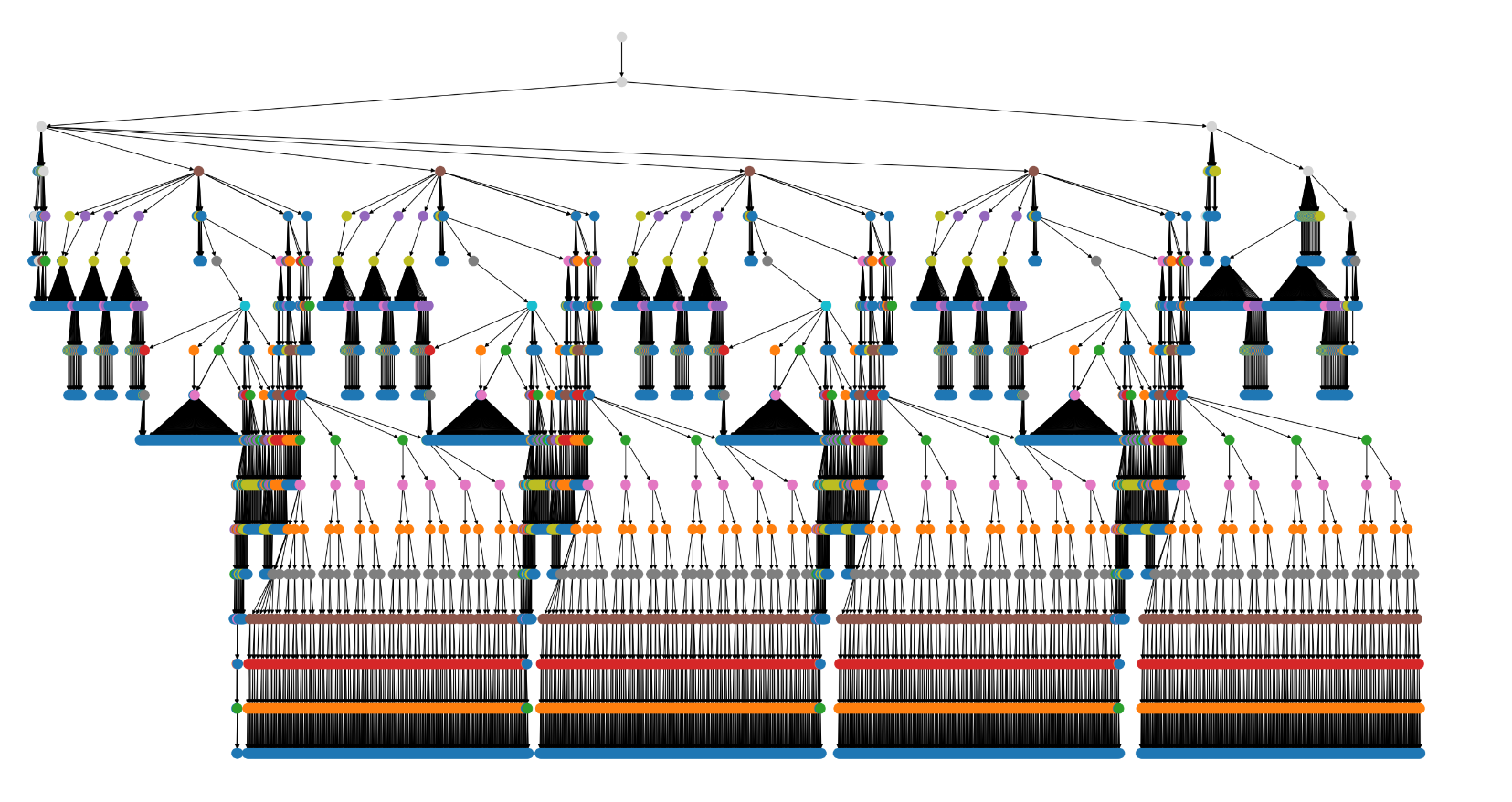 Partition Selection (BFS): With the graph built with weights, a Breadth-First Search (BFS) is used to traverse the hierarchy level by level. At each level, the algorithm groups instances by their structural hash.