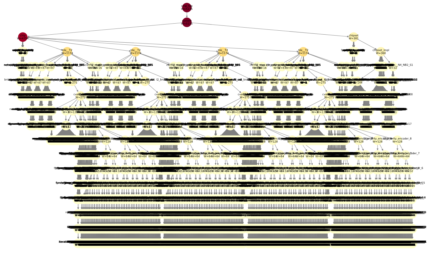 - Complexity Weighting or the Weight Model: After assigning the hashes, it became easy to find duplicate hierarchies, but this didn’t provide us any information about their size. Next, we used a weight model that assigns weights to nodes, allowing us to estimate the size of the underlying hierarchy. The current weight model is simple and works for any hardware design that has repeated hardware blocks organized as in the case of a manycore CPU. We have not tested the myriad of possible different topologies that exist in other designs, which may require changing the weight model or updating it to make it more general. This remains a future work.